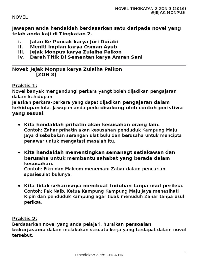 - Contoh Soalan Novel Tingkatan 1